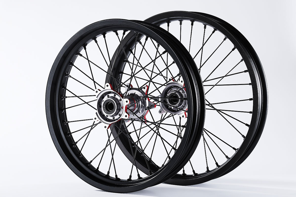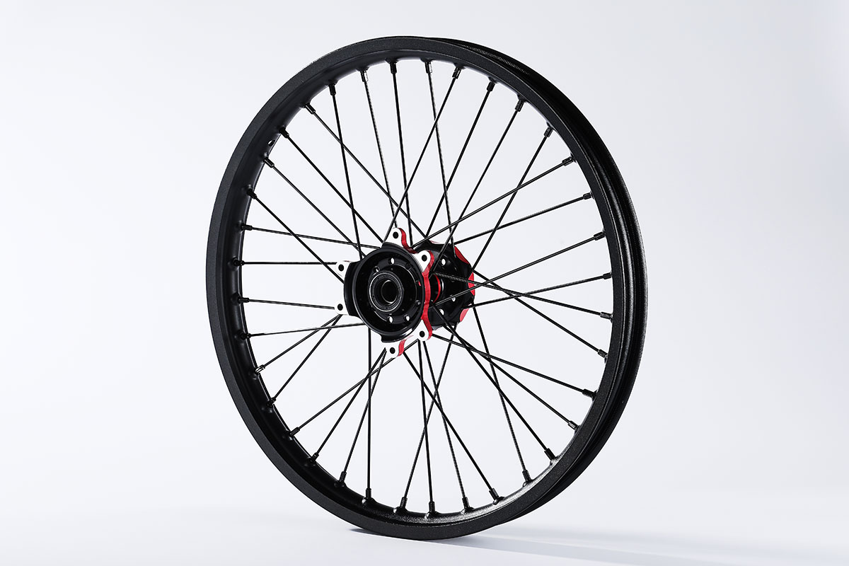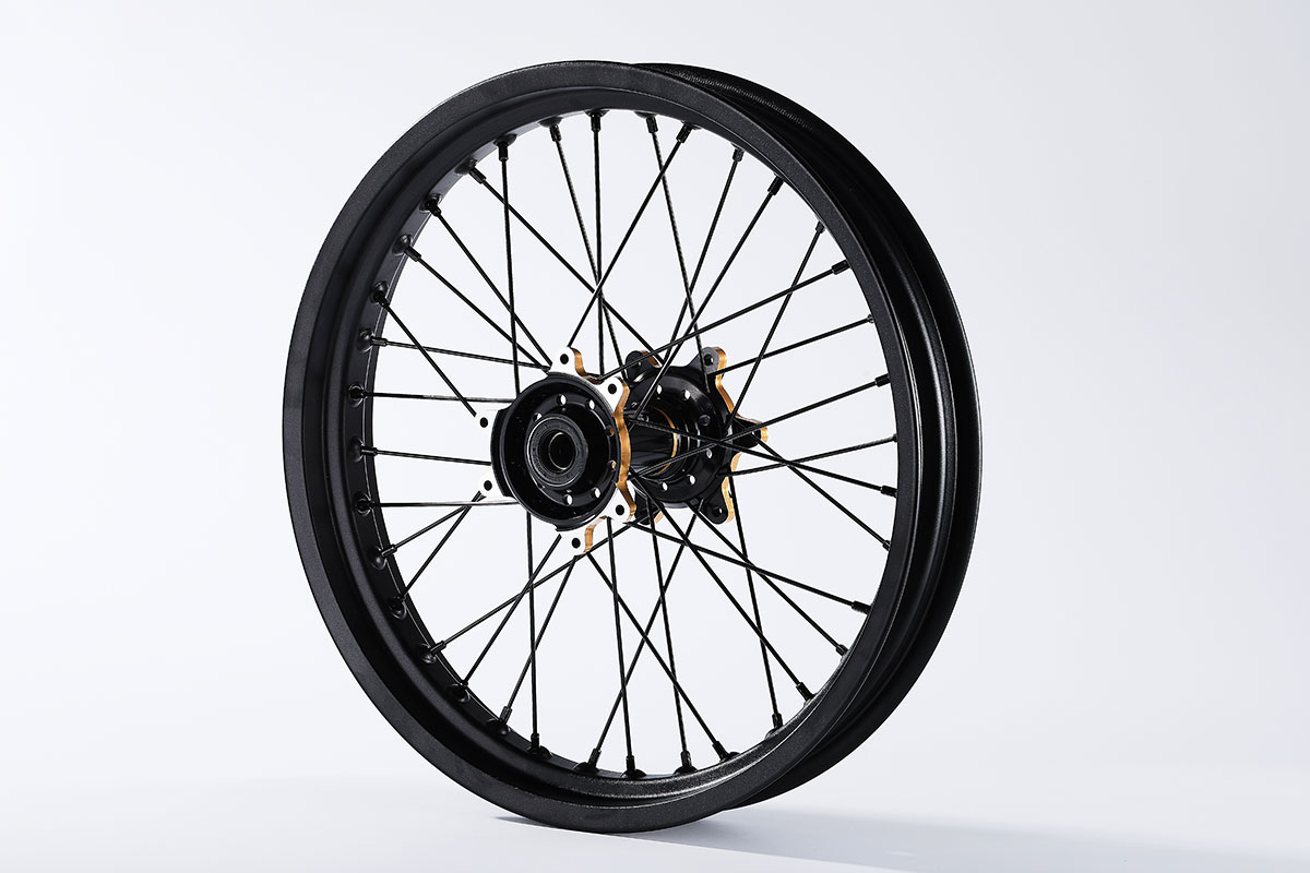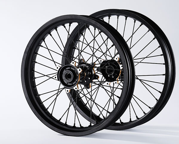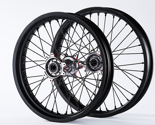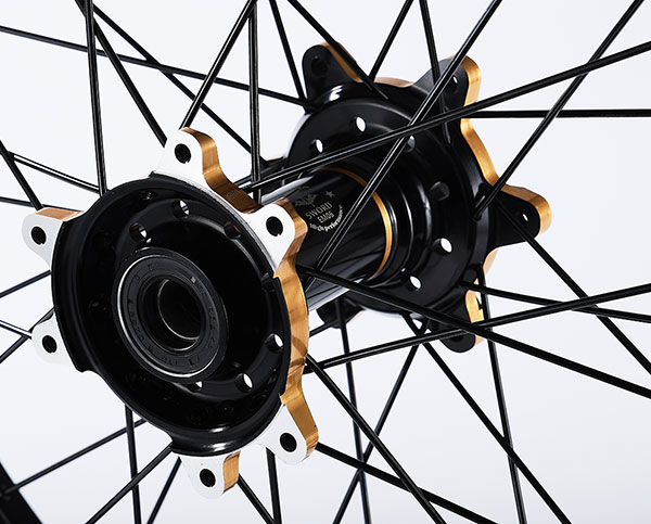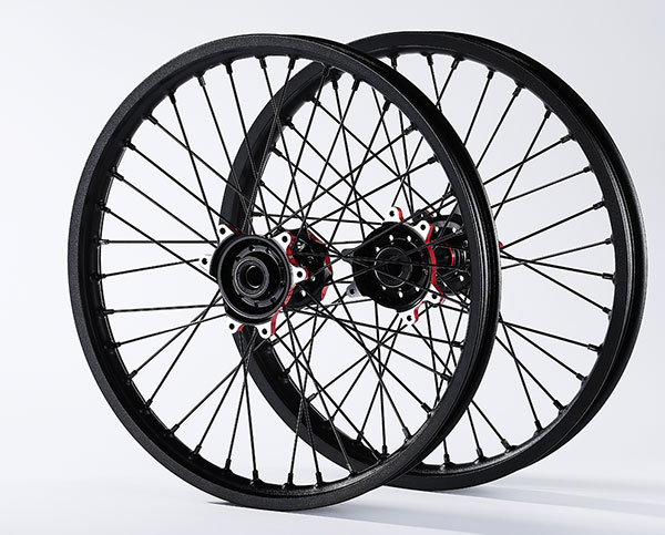 材质:7116AL T6,前轮:19*2.15" / 后轮:18*2.5",高强度铝制轮圈(黑金/黑红/钛红)