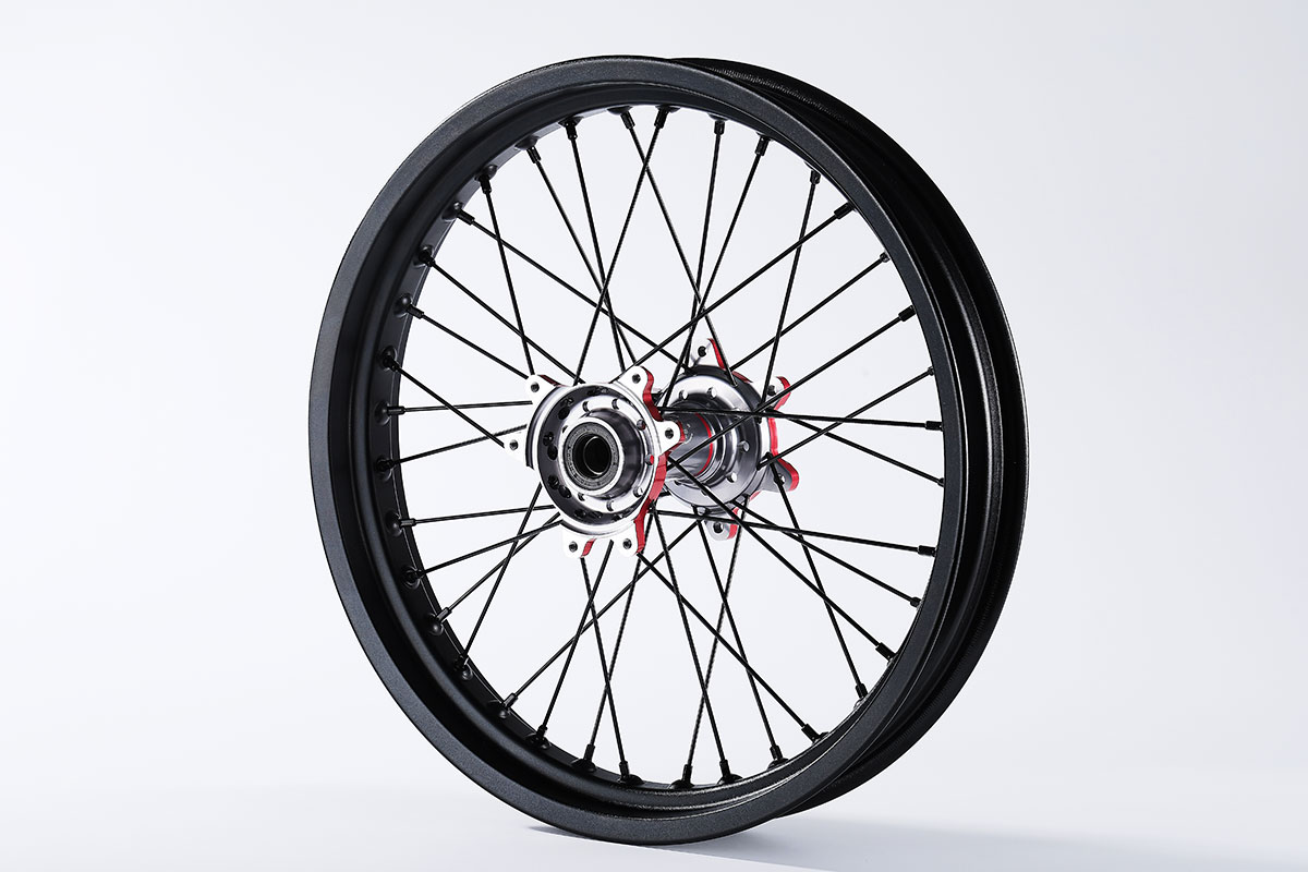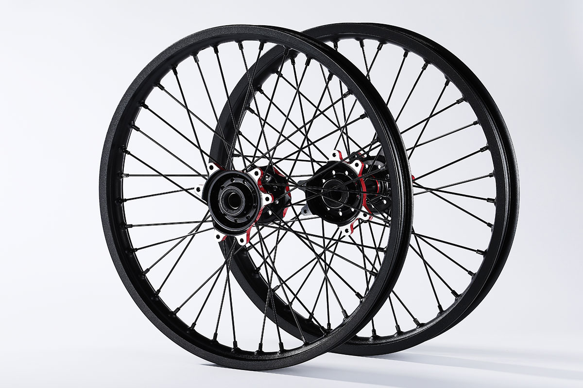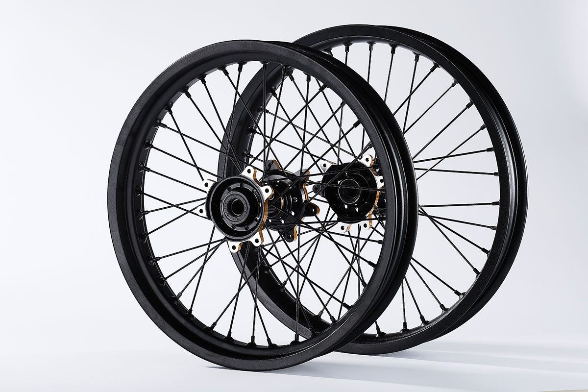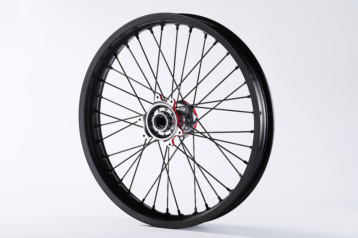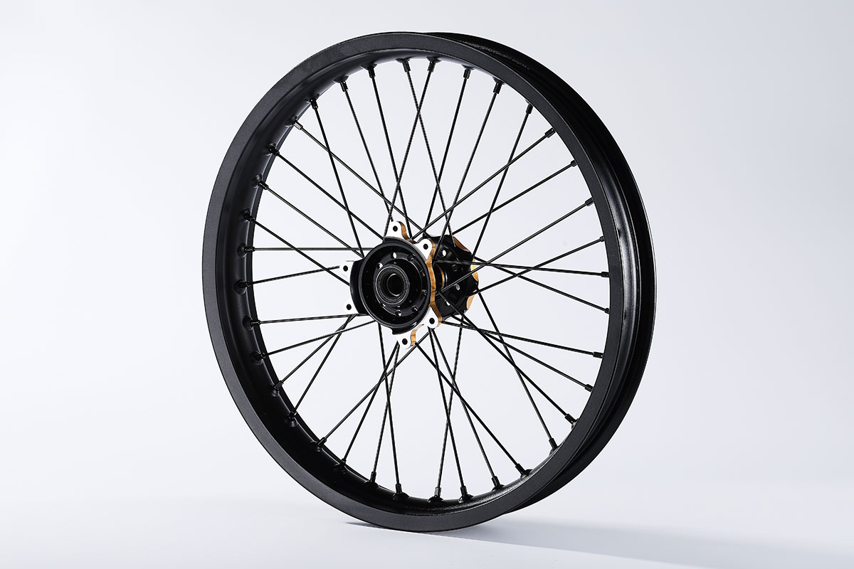 材质:7116AL T6,前轮:19*2.15" / 后轮:18*2.5",高强度铝制轮圈(黑金/黑红/钛红)